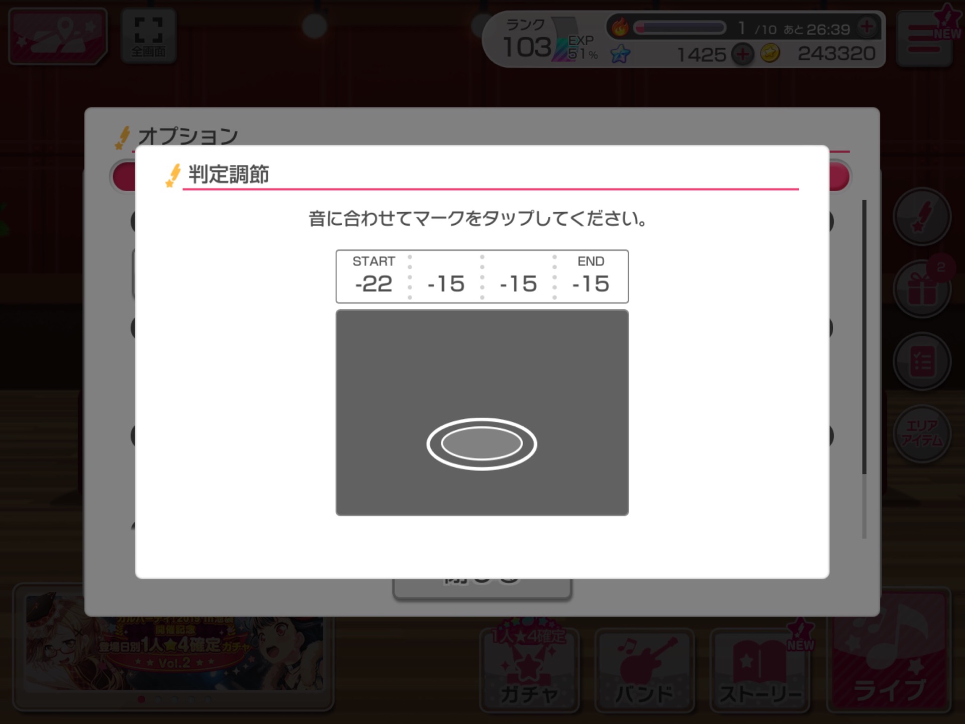 バンドリのライブ設定の画面で『判定調整』というものがあるのはご存知かと思いますがほとんどの方は『0』の設定にして弄っていないかと思われます(そもそも意味が分かっていない)