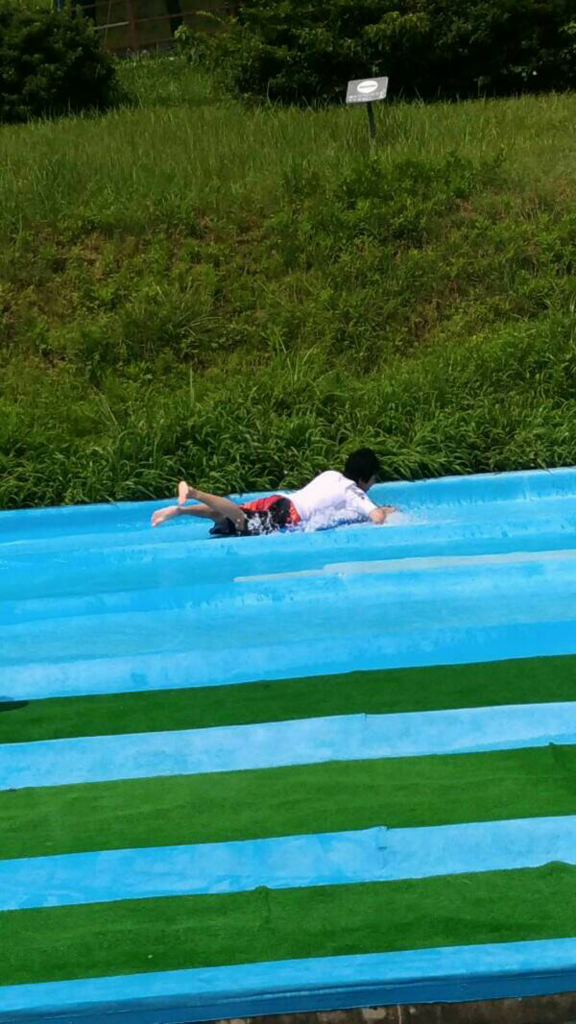 いろいろ必殺技を教えてあげようと思ったんですが、5歳の甥は目の前のプールに大はしゃぎでもはやコントロール不能。