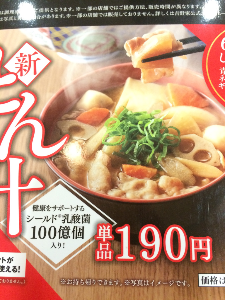 吉野家の豚汁は滅菌仕様です。安心してお飲みくださいませ!