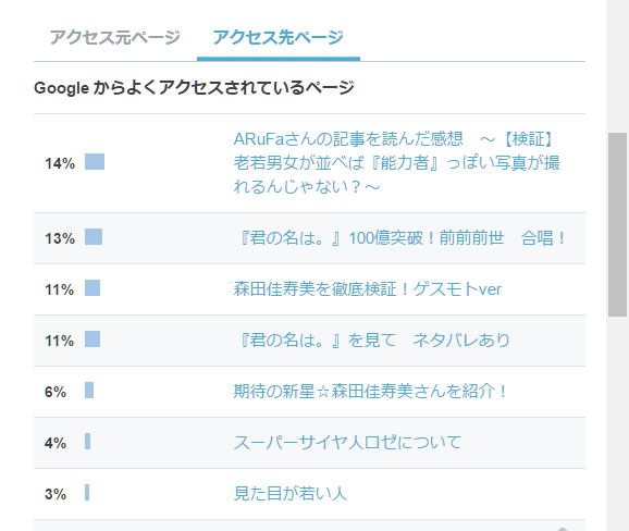 不動だった君の名は関連の記事をアルファさんが抜き、先日上げた森田佳寿美さんのがグイグイ伸びてきています。