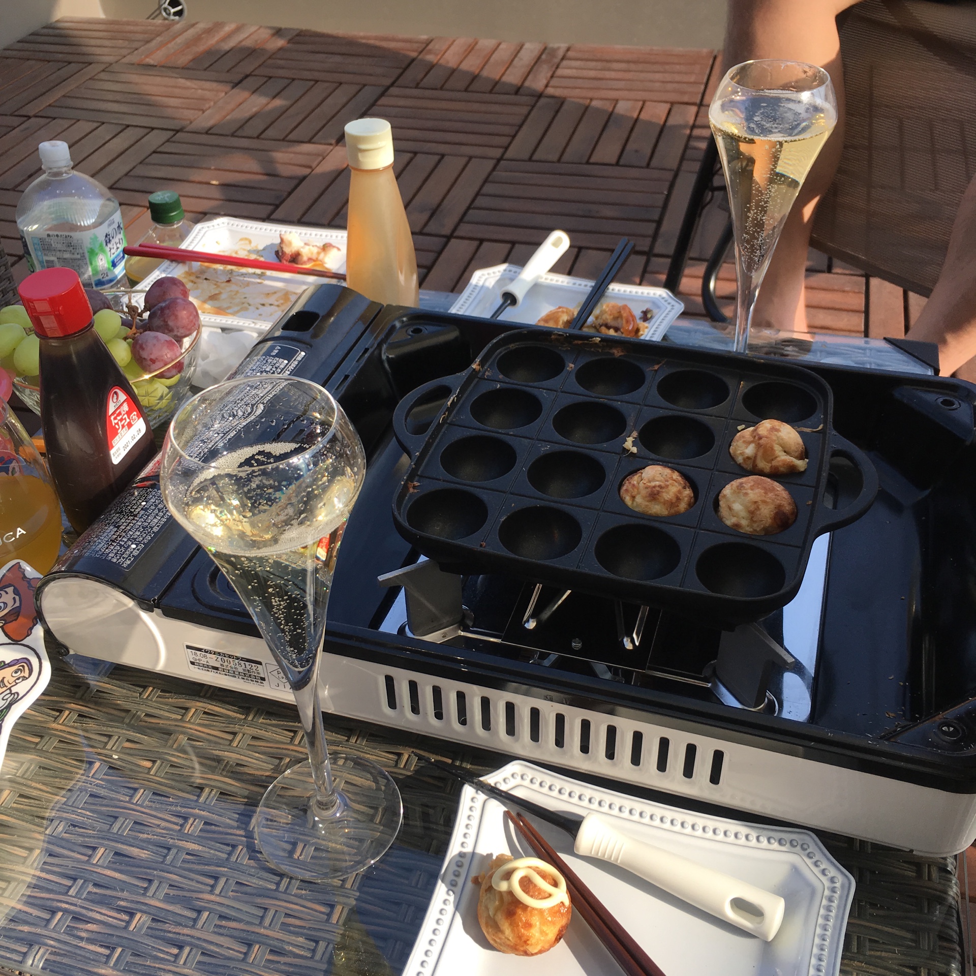高級住宅街の3回のベランダでタコパという贅沢な使い方をします!