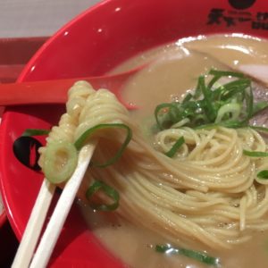 細いって言ってましたが、個人的にはそこまで細すぎない感じ。スープはかなりドロみが強い・・・ドロドロであればあるほどいいと思っていましたが、ちょっとドロドロしすぎているような・・・温度は難波店ほど出てない感じ。『逆に難波店は何であそこまで熱くできるの?』という疑問すら湧いてきます!