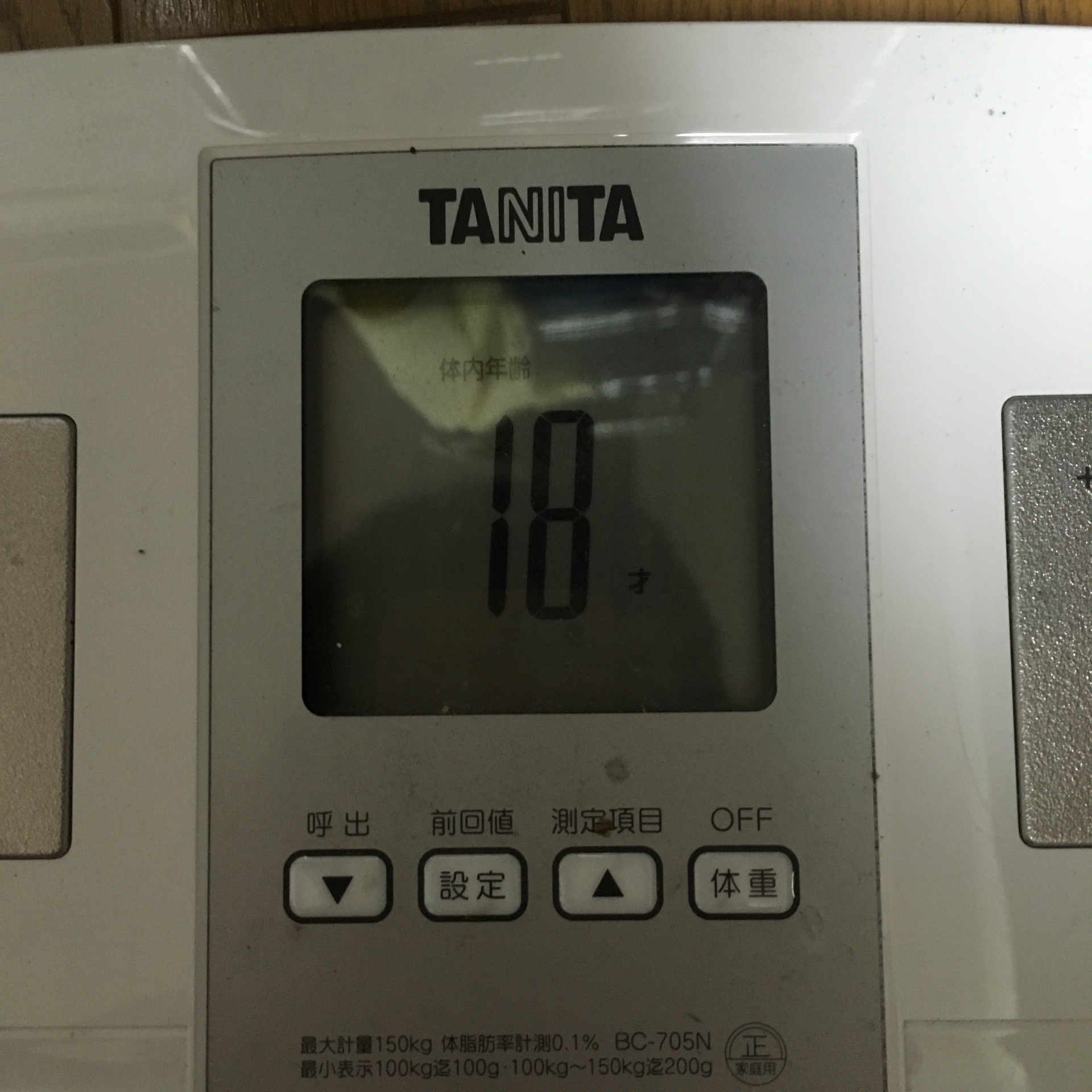 タニタの体重計で体内年齢18歳をマーク!!強い!これは強い!
